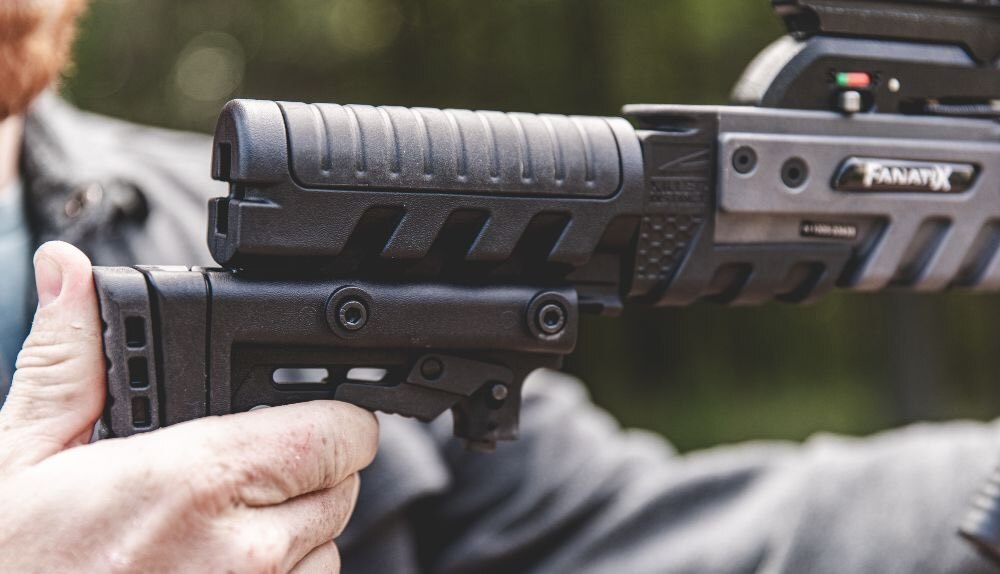 Keeping in step with today’s best designs, the FanatiX is outfitted with a pistol grip, which improves comfort, control and stability. The butt is adjustable in seconds and will accommodate shooters of different statures — ideal for husbands and wives, siblings or any other variation in which more than one shooter will share the crossbow. Even if only one shooter will be using it, this length-of-pull adjustment is great when switching from early season apparel to bulkier late-season apparel.