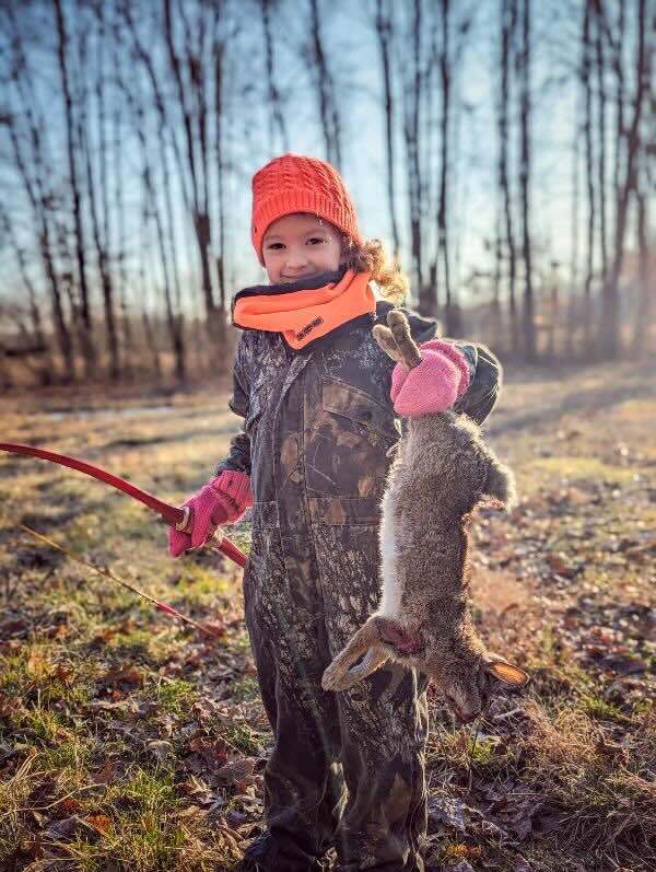 Here in Ohio, there is no minimum age requirement to legally hunt, so I bought her an apprentice hunting license. While Isabella obviously isn’t pulling enough draw weight to pursue deer, for her squirrels and rabbits are certainly fair game.
