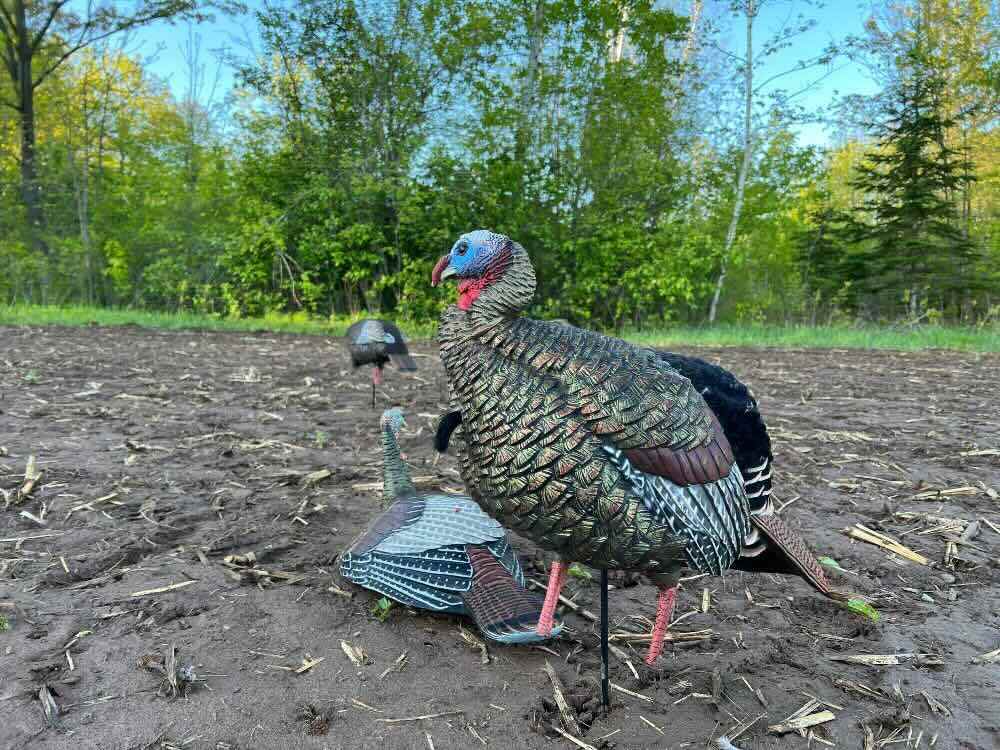 As I closed in, the forest erupted; several gobblers were roosting together. I crept within 80-100 yards of the roost, plugged my Avian-X HDR Jake and Laydown Hen decoys into the dirt field, then scuttled 12 yards to the field edge and settled in amongst some dense saplings with a narrow shooting window framing the decoys.