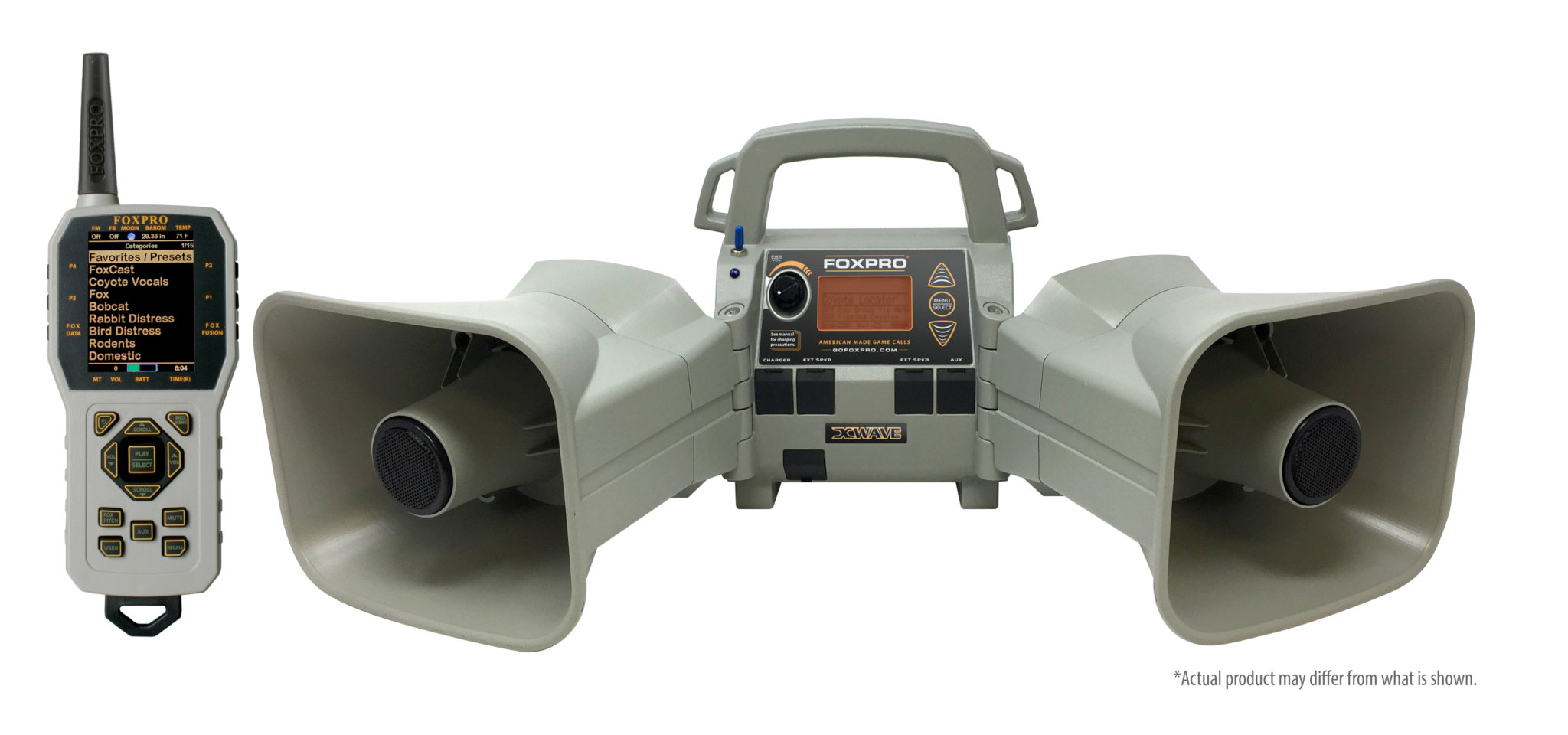 The TX-1000 features a full color graphic LCD screen, which displays your sound list or sound categories. It also has a barometer indicator, moon phase indicator, temperature indicator, battery level indicator, timer or time clock, Foxbang technology and much more. FoxMotion allows you to fade the sound from the left speakers to the right speakers to help “sell” the reality of your call sounds. FoxFusion allows you to mix and match any two sounds at the same time during your calling sequence. FoxCast allows you to play a pre-set custom sequence to include your favorite sounds, volume levels, and even pauses. FoxPitch allows you to manipulate the “pitch” of the sound in an effort to trigger a response. FoxData allows you to record real time information from each and every stand so you can access the data for future reference. The XWave is backed by a 5 year limited warranty and Foxpro's unmatched customer support and is proudly made in the USA.