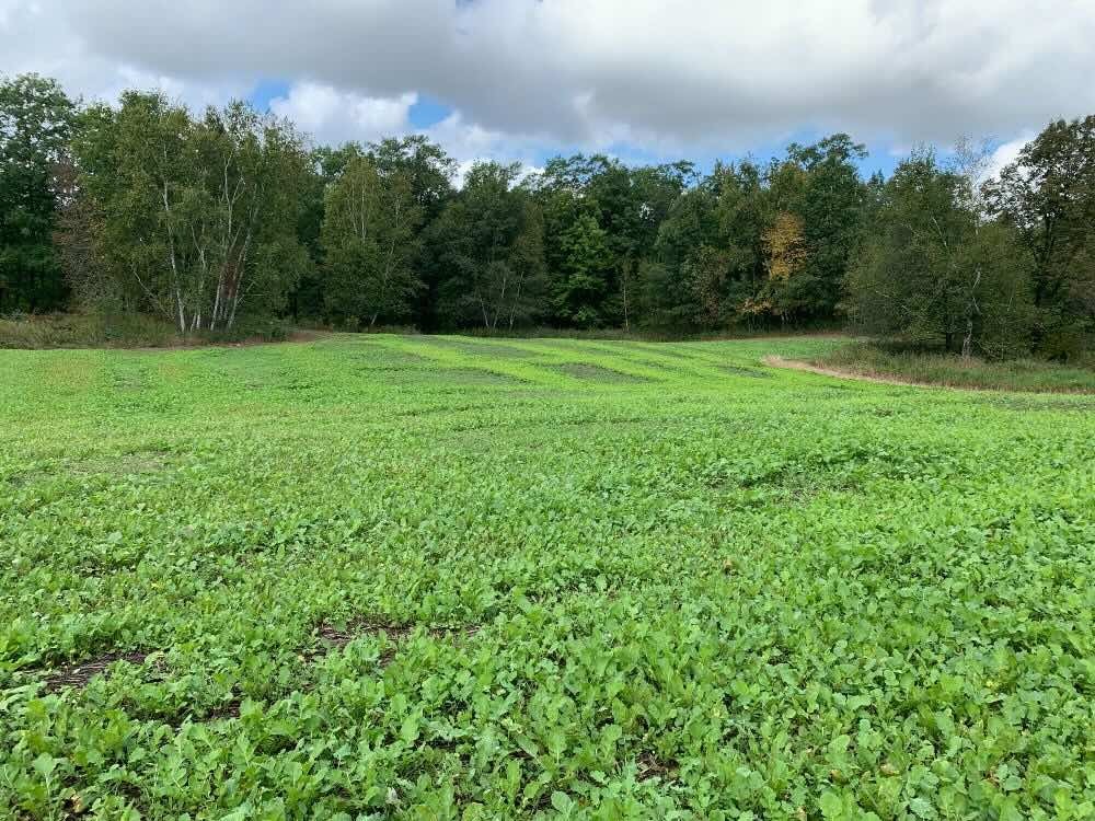 We didn’t receive any measurable rain in September AND October. As a result, our food plots didn’t produce anywhere near the tonnage we had hoped for. Our 1.5-acre field planted with Evolved Countdown and Turnip Pro (separate sections) grew to about 6 inches and then put on the brakes when the rain stopped.