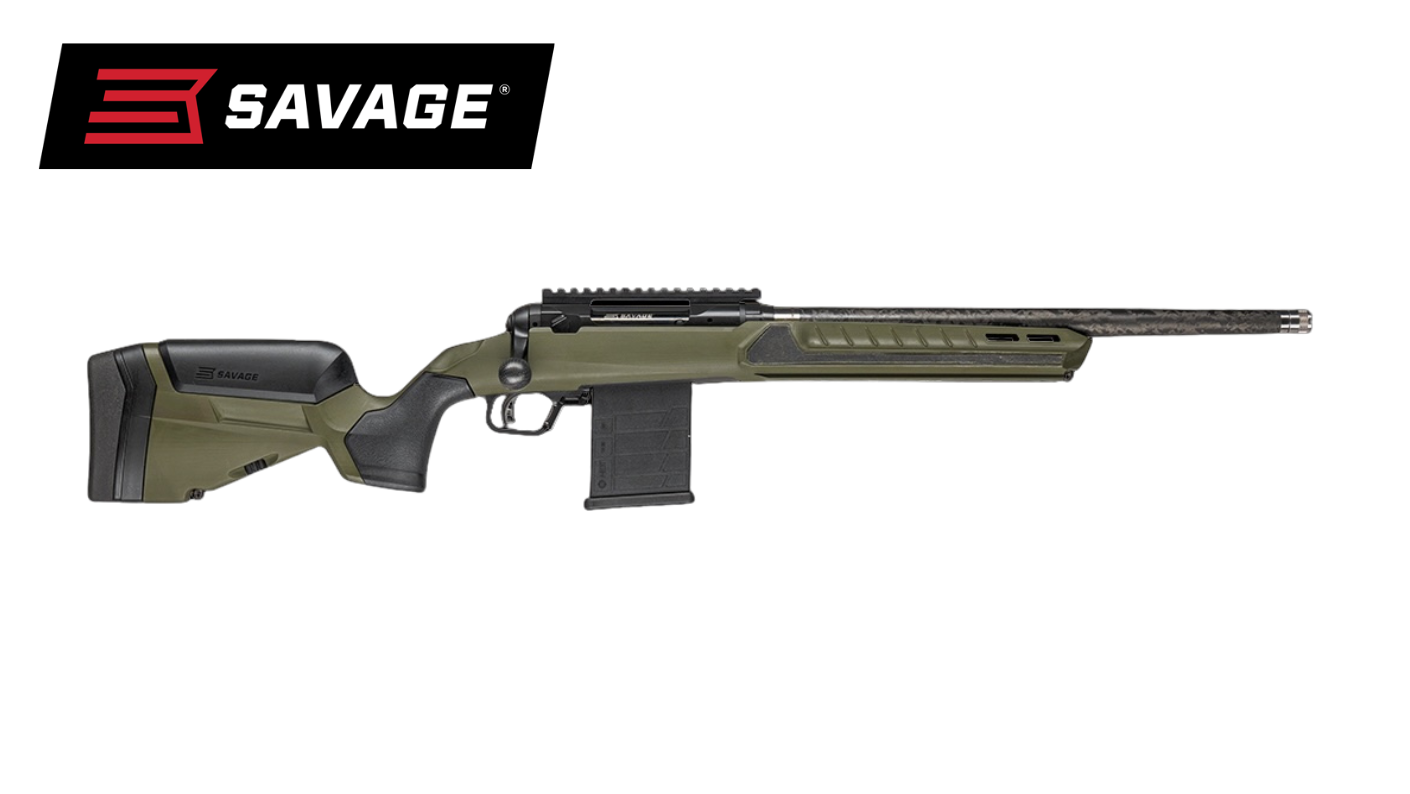 interchangeable grip modules for a customizable fit. A beavertail forend with integrated M-Lok panels and an ARCA rail enhances stability and accessory mounting options. The Black Ink Cerakoted action is paired with a skeletonized receiver to reduce overall weight, while a jeweled bolt body with a threaded handle increases durability. Carbon fiber barrels run from 16.5 to 22 inches, depending on caliber, and come threaded for suppressor or brake use. Additional features include AICS magazine compatibility, adjustable AccuTrigger and left-hand options. MSRP: $1,899. Contact: www.savagearms.com