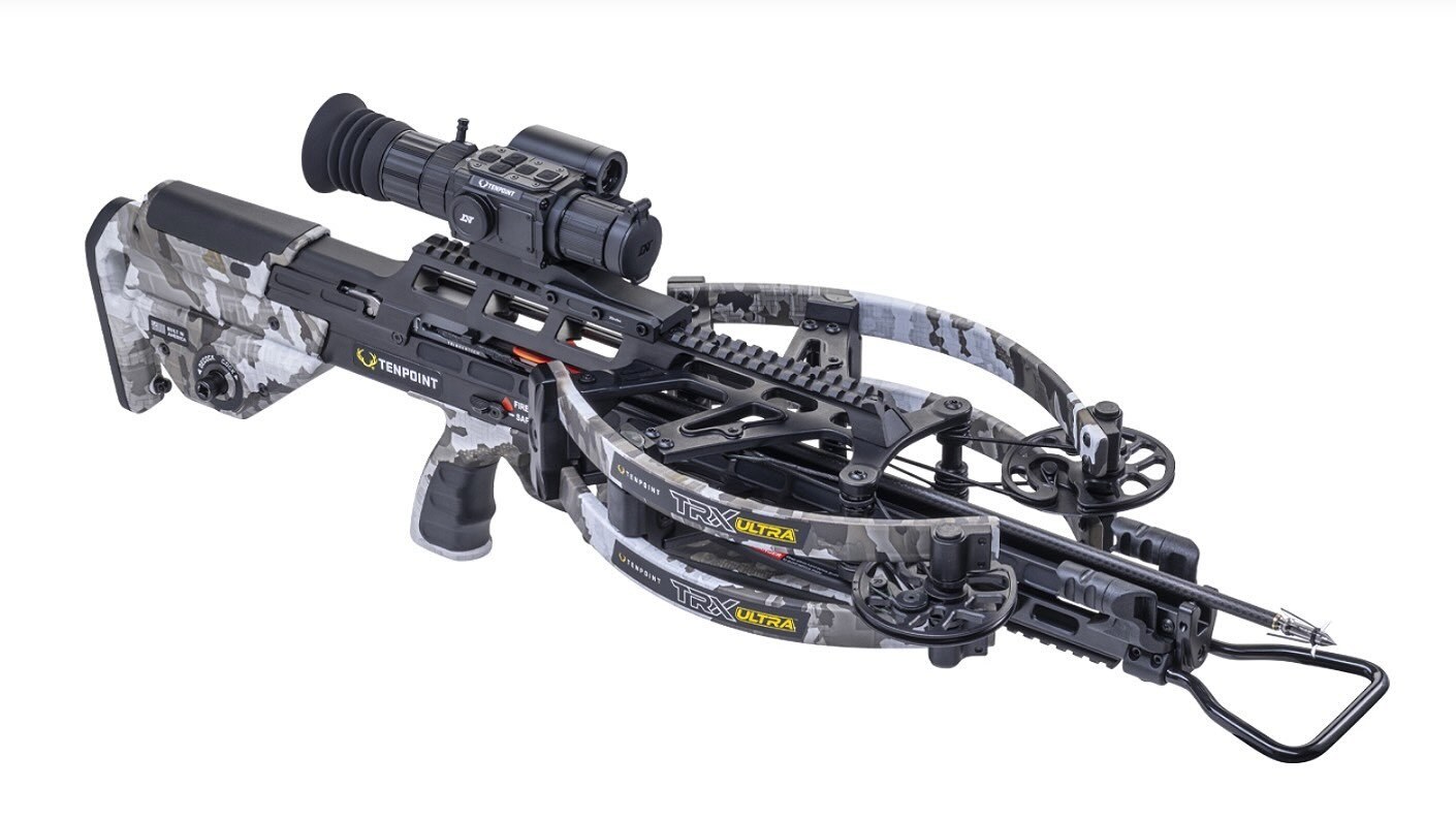 Measuring 29.5 inches short and 6 inches narrow, the TRX Ultra Vision crossbow from TenPoint releases an arrow at 515 fps and features Twin-Riser technology, a custom TriggerTech trigger, AR-style ambidextrous thumb safety and multiple precision-engineered accuracy advancements.