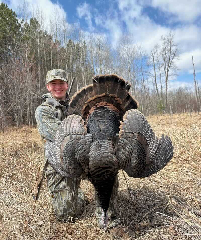 Thankfully, the turkeys read the script and both newcomers dropped mature toms on the first morning of their hunt. Elliott was sitting with Sawyer, and Matt was sitting a few hundred yards away with his dad, who owns the land. (This was also the dad’s first time experiencing a turkey hunt. He didn’t buy a turkey tag for 2026 but plans to next spring!) Both gobblers were strutting beside jake decoys when the No. 5 copper-plated lead pellets hit home. The two birds died within an hour of sunrise (top photo).
