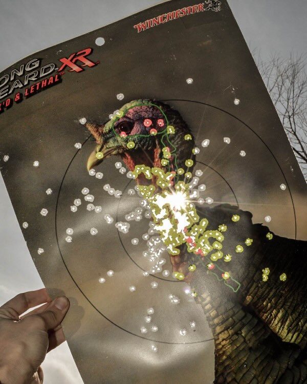 Because he understands that shotgun chokes and loads should be tested/verified before going into the field, Ellliott spent an afternoon with his buddies shooting paper (turkey targets) at 30 yards. Once everyone was dialed in at 30, Elliott tested a couple rounds from 40 yards, too.