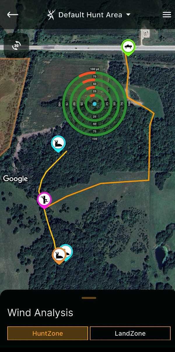 Sometimes, the shortest route to a stand doesn’t check these boxes, so you’ll have to sit down and peg a route that does. HuntStand Pro Whitetail is my mapping app of choice, and it substantially simplifies this process. I alternate between the different base maps and overlays to peg food sources, potential bedding areas, roads, parking areas, trails and topography, all of which can inform my access. I highly suggest it.